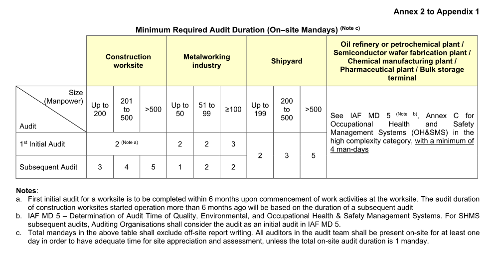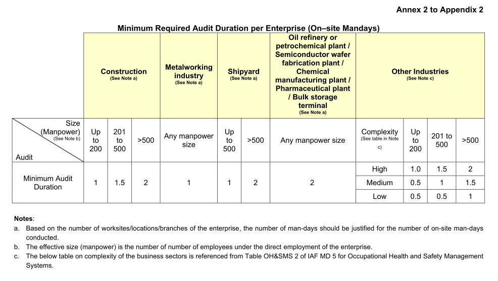 - The minimum time for conducting an audit will be determined in compliance to the requirements stipulated